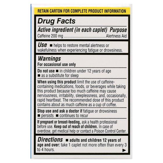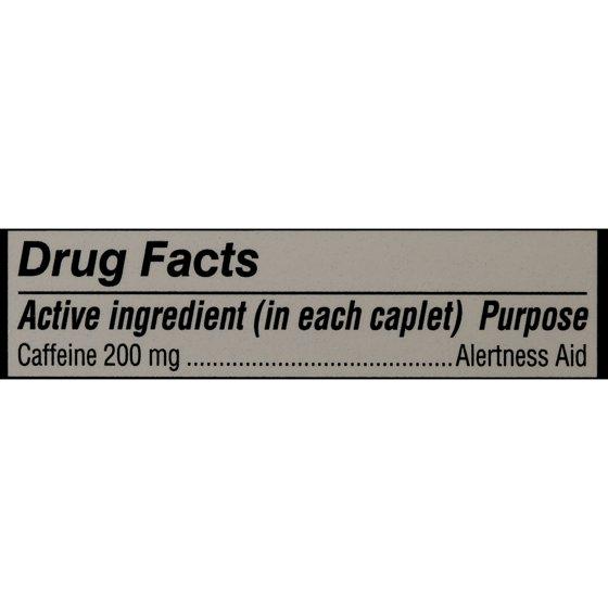 Active Ingredients (per Caplet): Caffeine (200 mg). Inactive Ingredients: Calcium Stearate, D&C Yellow 10, Lactose, Microcrystalline Cellulose, Silicon Dioxide.