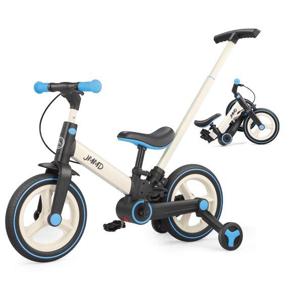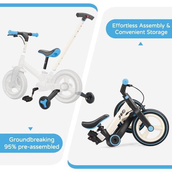 JMMD Toddler Bike with Training Wheels, Kid Balance Bike with Push Handle, Pedals, 6-in-1 Foldable Toddler Tricycle for Boy & Girl 1-5 Years, Blue