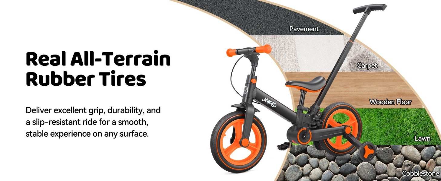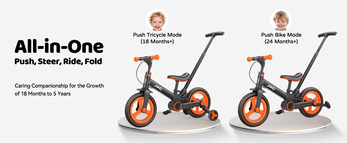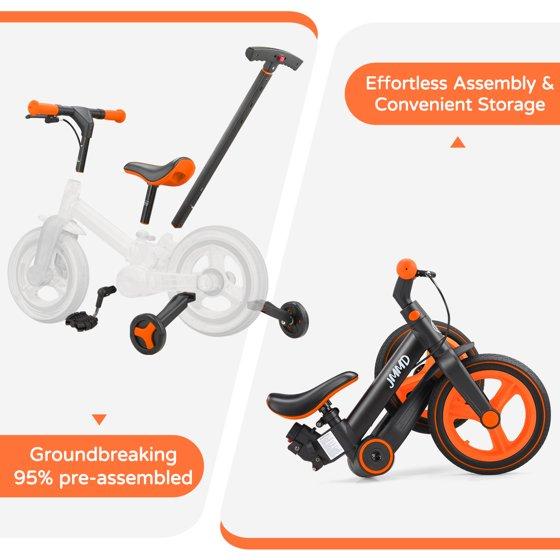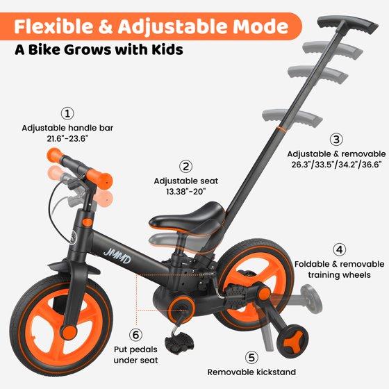JMMD Toddler Bike with Training Wheels, Kid Balance Bike with Push Handle, Pedals, 6-in-1 Foldable Toddler Tricycle for Boy & Girl 1-5 Years, Orange