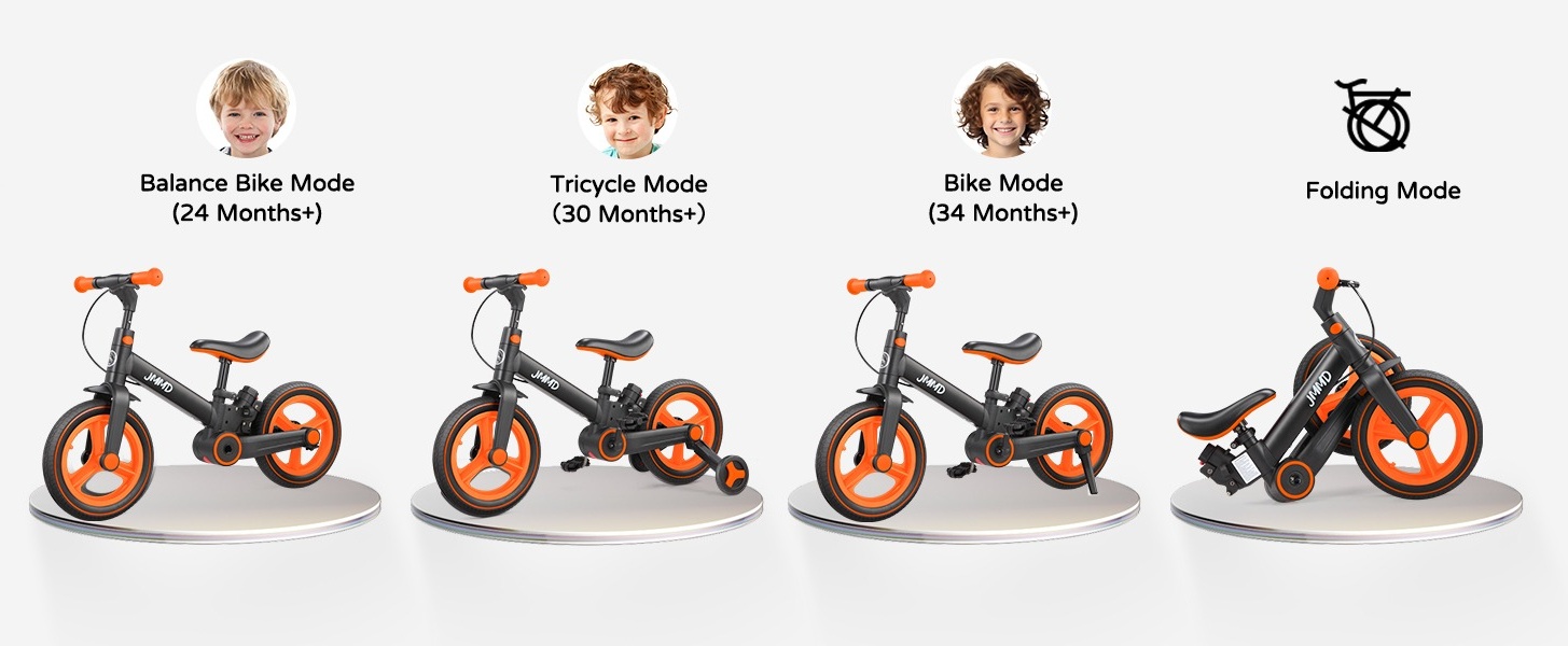 - Multifunctional Kids Bike: This 6 in 1 Kids Bike can be transformed into 6 modes: push bike mode, bike mode with training wheels, kids bike mode, balance bike mode, bike mode with kickstand and folded mode, which meet the needs of children 18-60 months, bringing children the joy of riding