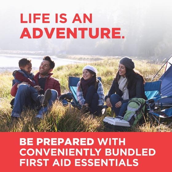 Care for minor cuts, scrapes and burns with the Johnson & Johnson All Purpose Compact First Aid Kit. This emergency first aid kit contains essential first aid supplies including cleansing wipes, gauze pads, assorted bandages, rolled gauze, antibiotic cream, itch stopping cream, acetaminophen caplets, an instant ice pack, and more. This portable first aid kit contains products from leading, doctor-recommended brands, including Band-Aid Brand Adhesive Bandages, Neosporin, Tylenol, Bengay and Benadryl. It also includes a first aid guide and a durable, plastic box to keep items accessible and organized. This #1 selling branded first aid kit is for use anywhere - perfect for use at home, in a dorm, in the car and on-the-go, or for camping and other outdoor activities. First aid kit offers a great value by saving you over $8 vs. average retail price for the included first aid supplies.