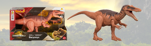 - Attack and roar! This Wild Roar Baryonyx toy inspired by Jurassic World Rebirth has an aggressive attack which can change direction, and a ferocious roar for exciting dinosaur play!