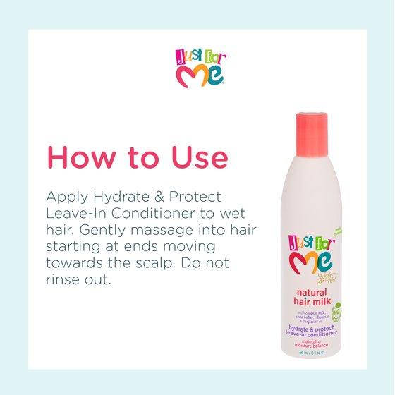 - FORMULA: Just For Me Natural Hair Milk Detangling Leave-In Conditioner is a deeply conditioning lotion to improve softness and boost shine.