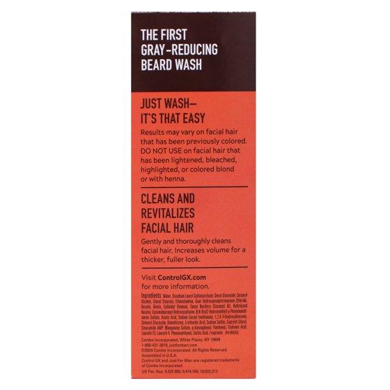 Maintain a natural, younger-looking beard with Just for Men Control GX Grey Reducing Beard Wash. Formulated with Keratin and specially designed for facial hair, this gentle beard wash gradually reduces grey with each wash—allowing you to subtly blend greys rather than instantly cover them. The result is a natural, even tone that becomes more defined over time. Simply use in place of your normal beard cleanser and watch as your beard looks fuller, darker, and healthier with continued use. With a 4 fl oz tube and packaging that may vary, Control GX helps you take control of your look while keeping your grooming routine simple and effective.