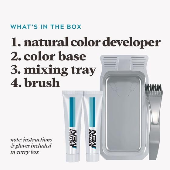 - Color for Gray Beards: Just For Men Mustache & Beard in Jet Black (M-60) is a beard coloring product that helps eliminate gray facial hair, restoring your natural shade while adding thickness and fullness.