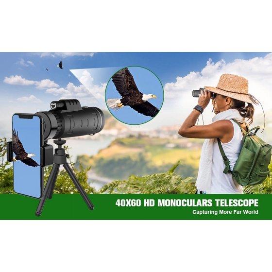Juyafio 40x60 HD Monocular Telescope for Smartphone with Holder & Tripod,Waterproof Monocular for Day and Night, Perfect for Bird Watching, Wildlife Hunting, Hiking, Travelling,0.5lb