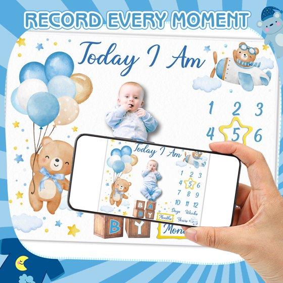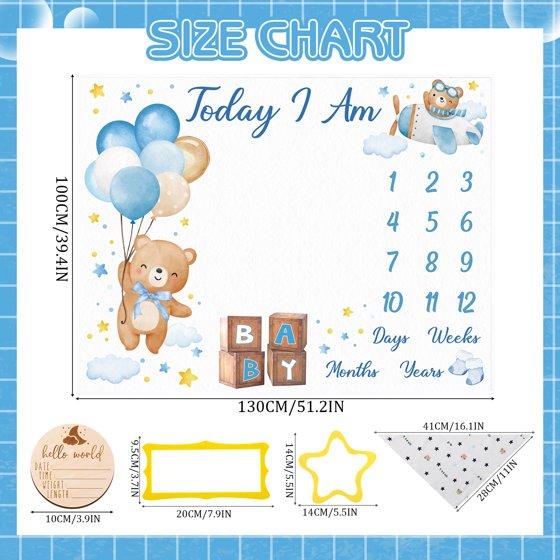 KABOER Baby Milestone Blanket for Baby Boy Girl, Bear Baby Monthly Milestone Blanket Baby Growth Blanket, Newborn Photography Background with Wooden Signs, Frames, Bandana