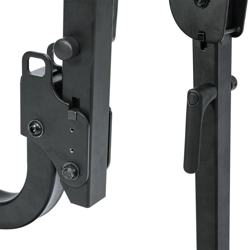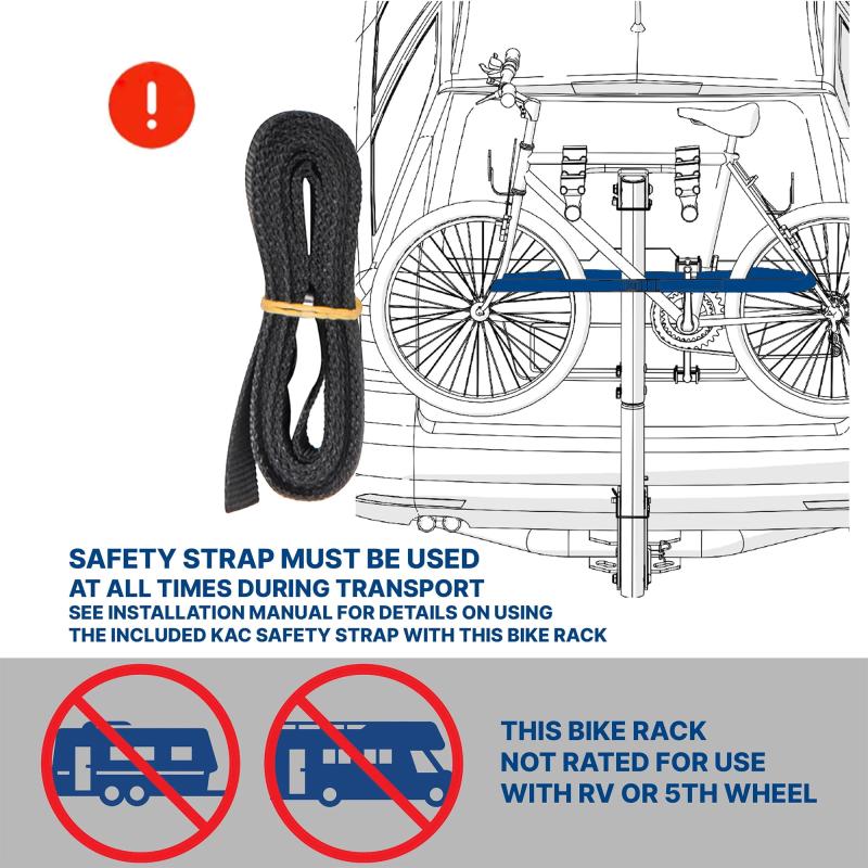 - Tire and frame straps and locking hitch pin with anti-wobble mechanism safely secures your bike