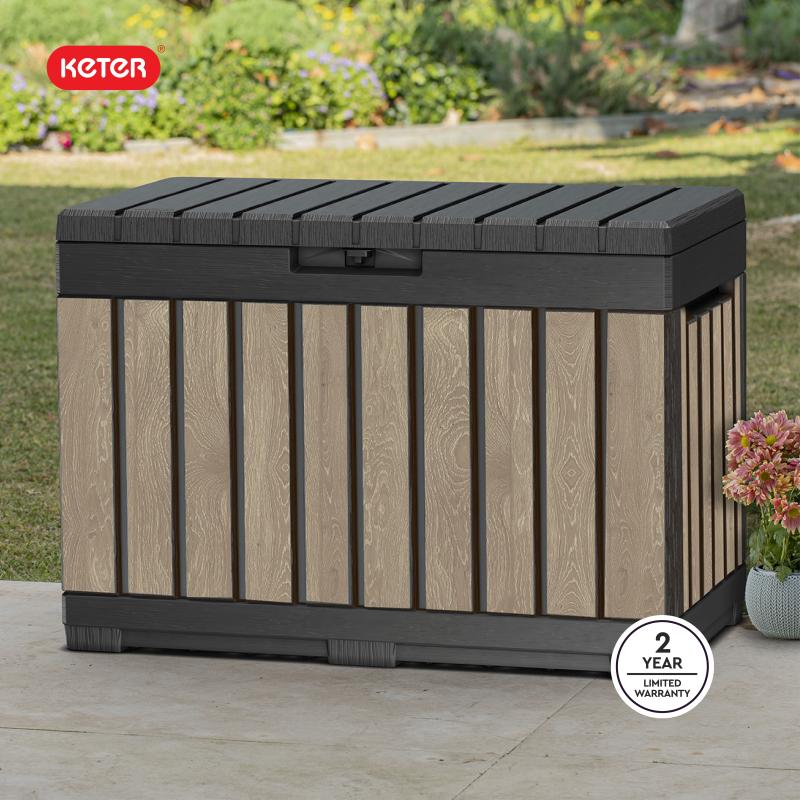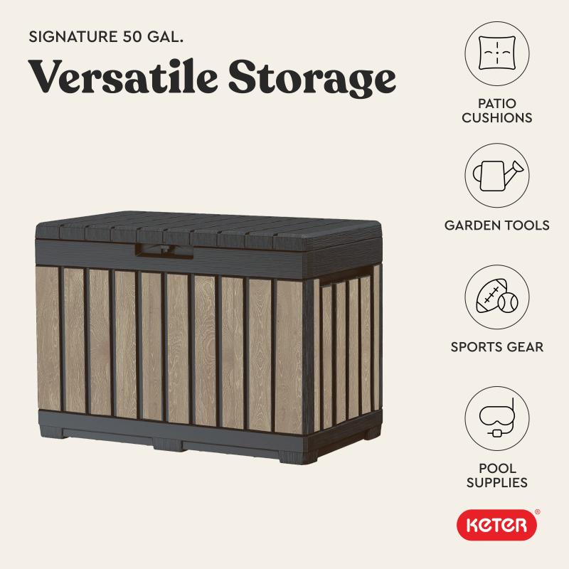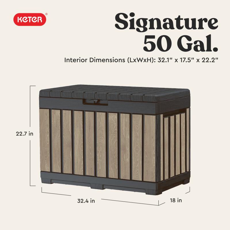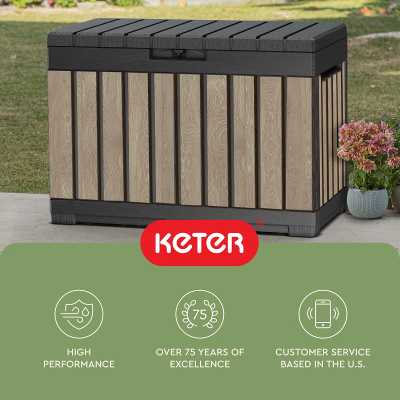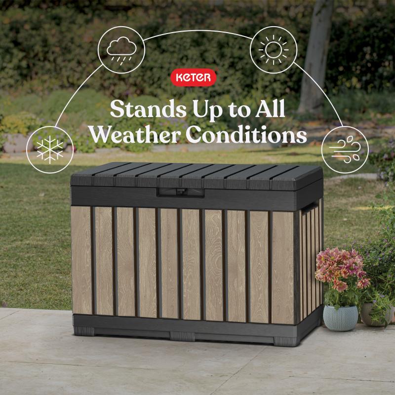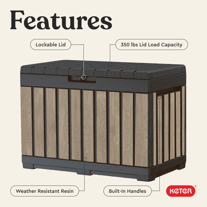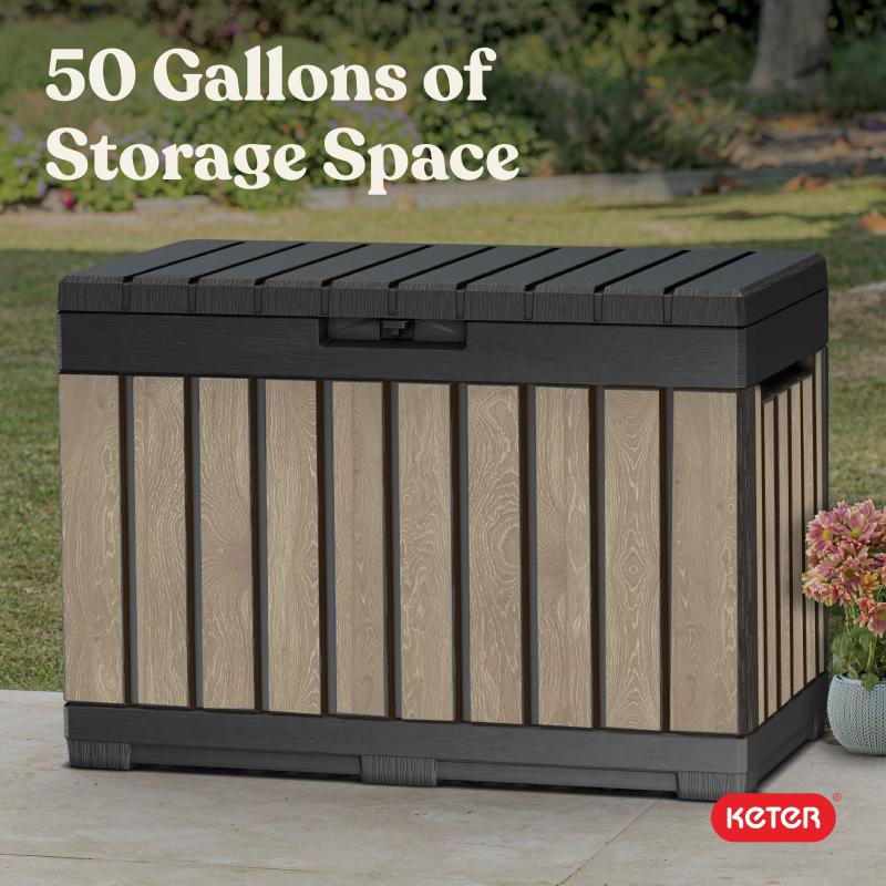 Keter Kentwood 50 Gallon Resin Deck Box-Organization and Storage for Patio Cushions, Throw Pillows and Garden Tools, Ashwood