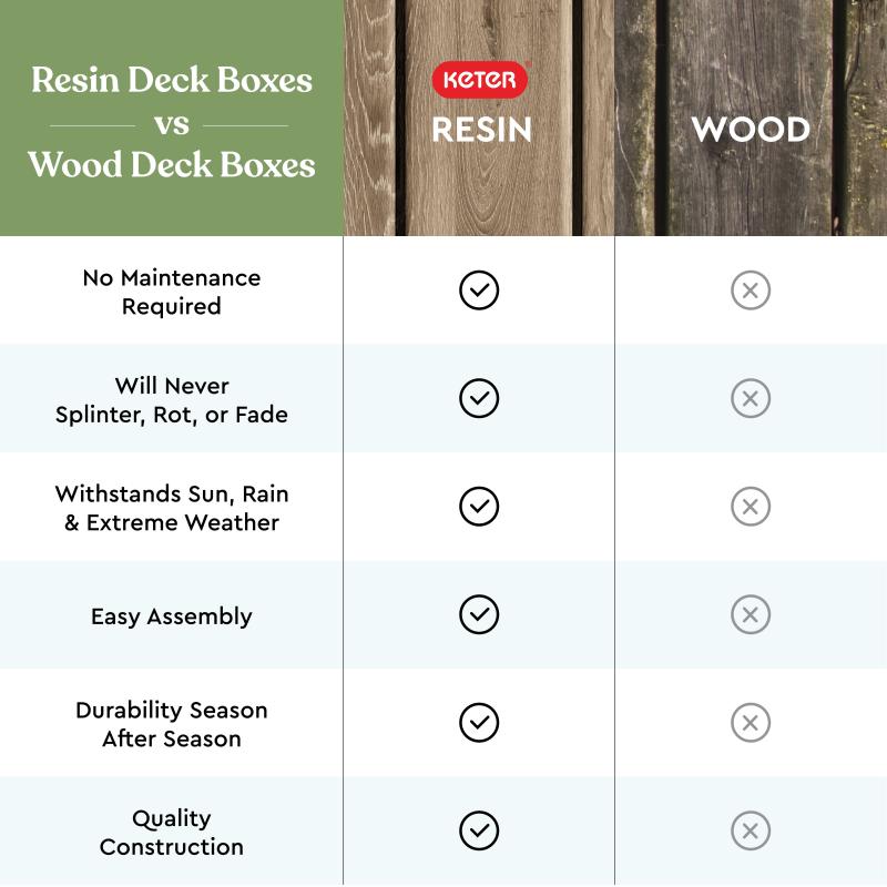 - Weatherproof outdoor deck box perfect for your garden, outdoor pool, apartment balcony, or wherever you need convenient lockable storage space.