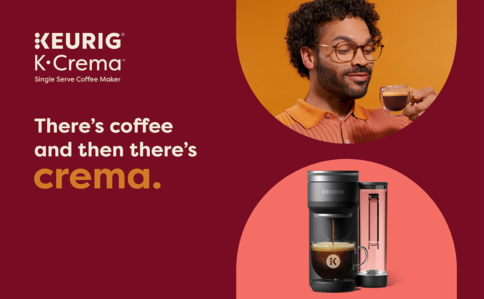 The Keurig K-Crema Single Serve Coffee Maker — your favorite Keurig coffees, elevated to crema-topped coffee perfection. What’s Crema? It’s a layer of micro coffee bubbles formed through our innovative PressureInfusion Technology that add rich flavor and a silky-smooth texture to any coffee K-Cup Pod that is truly crema-licious. Keurig K-Crema also offers incredible versatility with its PressureInfusion Technology and MultiStream Technology. This allows you to effortlessly brew not just crema-topped coffees, but also full-bodied espresso-style shots, classic coffee, cocoa, and tea—all at the touch of a button. With hundreds of varieties of K-Cup Pods available, you'll find endless options to satisfy your cravings. To use the PressureInfusion Technology setting, simply press the ‘Pressure’ button to infuse 5x more pressure than standard Keurig brewers, resulting in a rich coffee crowned with a layer of silky crema. In the mood for a more traditional cup? Simply press the ‘Classic’ button and our MultiStream Technology will extract the full flavor and aroma from your favorite K-Cup Pod. Keurig K-Crema also features an adjustable drip tray with three height options to accommodate various cup sizes, beverage varieties and travel mugs, as well as a 72 oz removable reservoir that allows you to brew multiple cups before refilling. No matter how you brew or which flavor you select, the K-Crema delivers the simplicity, convenience and variety that Keurig is known for with full-bodied flavor and pure coffee joy. The K-Crema Coffee Maker is not compatible with a reusable coffee filter.*Cup not included*