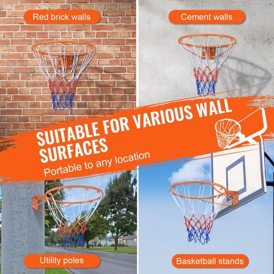 Basketball Rim: This basketball rim uses a heavy-duty structure that is sturdy and durable. It can withstand the impact of the ball, the bouncing action of the basketball hoop, and external environmental factors, and it is not easily deformed even with long-term use. You can install it on any stable vertical surface where you want to play basketball, including walls, doors, or other suitable locations in garages, playgrounds, driveways, backyards, and indoor walls.