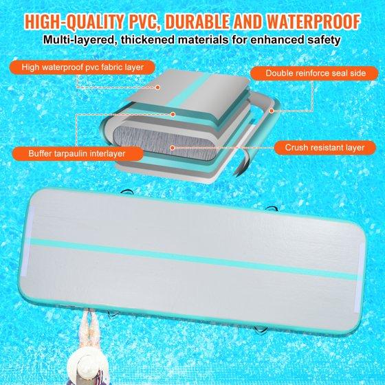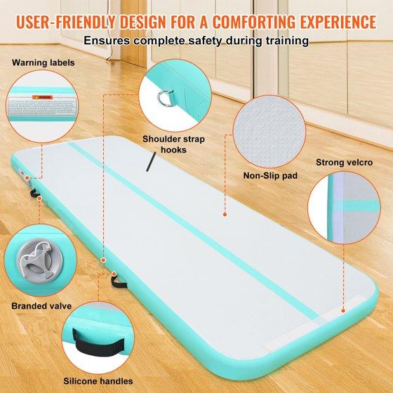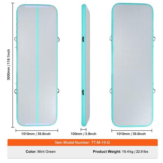 KFFKFF Inflatable Gymnastics Mat, 4-inch Thick, Tumbling Track with Electric Inflation Device, Suitable for Home, Gym, Yoga, Cheerleading, Beach, Park, Water Activities, 10 ft, Refreshing Mint Green