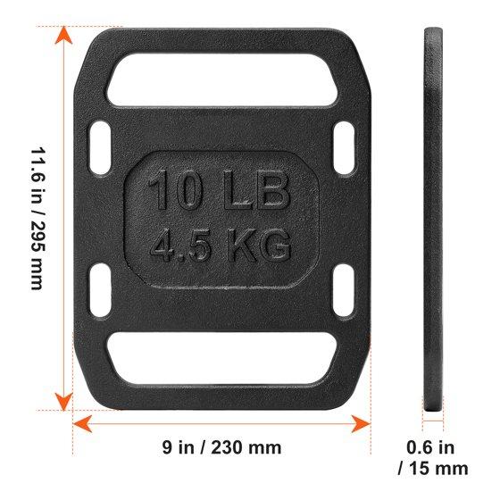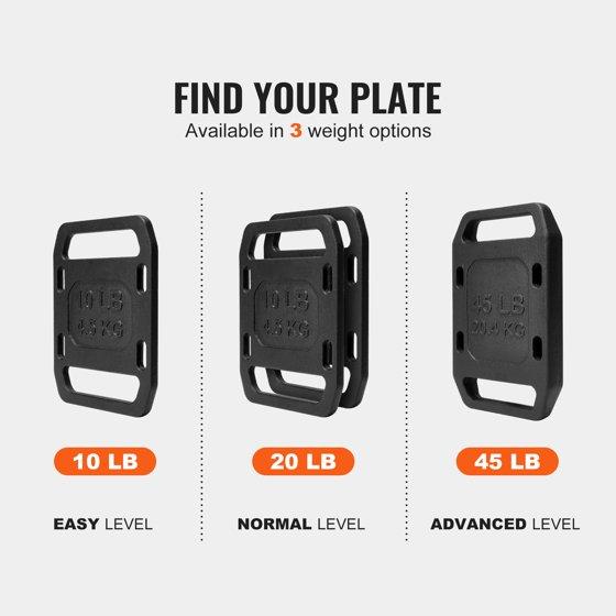 - Customizable Weight: Easily adapt your training with our adjustable weight options. With the ability to switch between 10 lbs and 20 lbs, you can tailor your workout to your desired intensity. The side holes also allow for safe and flexible weight adjustments by combining with other plates using straps.
