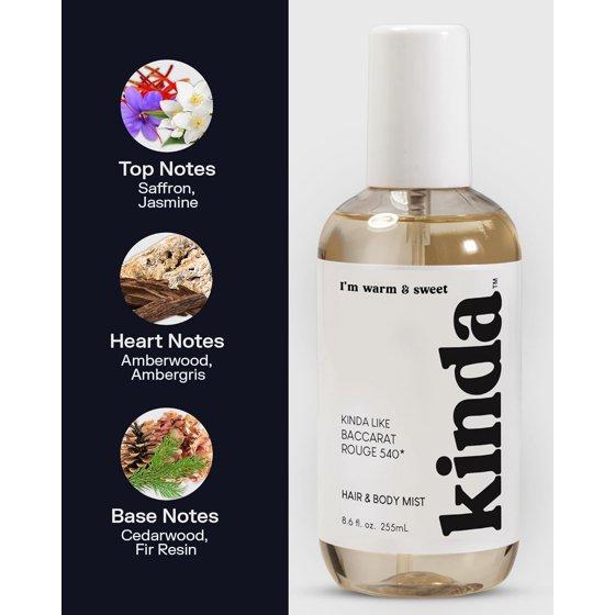 Kinda Warm & Sweet Hair & Body Mist – Our Version of Baccarat Rouge 540 – Woody Floral Scent with Jasmine, Saffron, Cedarwood & Amber, Christmas Gifts for Women, 8.6 fl.oz