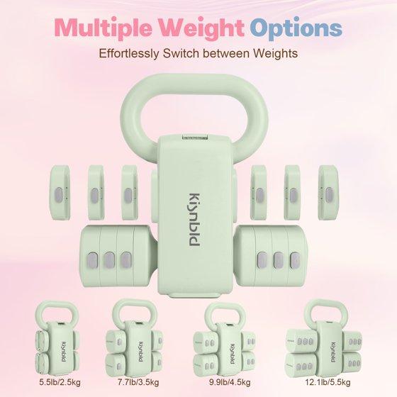 kisnbld Adjustable Kettlebell Set, 2 in 1 Free Weights Dumbbells & Kettlebell Set for Women with Fast Adjustment, Each 2lb 3lb 4lb 5lb Hand Weights Set for Home Gym & Outdoor Exercise Training