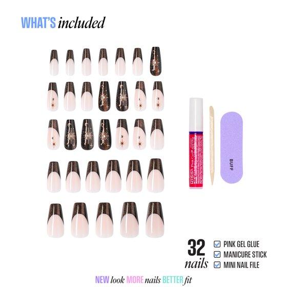 - Nail kit includes 32 fake nails, 2g nail glue, 1 manicure stick, 1 mini nail file