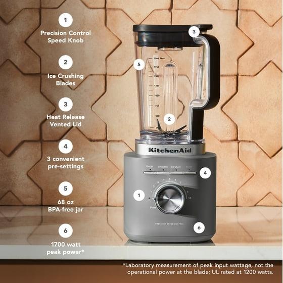 KitchenAid 68 oz Pure Power Blender, 1700 Watt Peak Power*, Matte Charcoal Grey