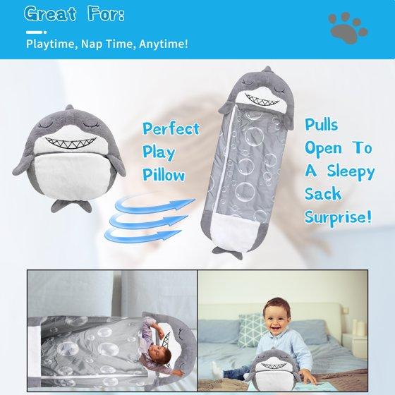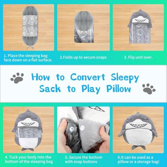 KKL Kids Sleeping Bag with Pillow ,2-in-1 Foldable Gray Shark Sleeping Bag ,Soft Comfortable Warm All Seasons Sleeping Bag Pillow for Kids 48*18 inch