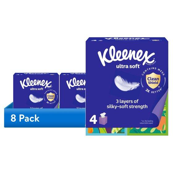 (8 pack) Kleenex Ultra Soft Facial Tissues, 4 Cube Boxes, 60 Tissues per Box, 3-Ply