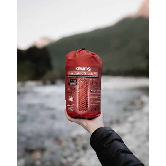 Klymit Insulated Static V Sleeping Pad Durable Camping Inflatable Mattress, Brick Red