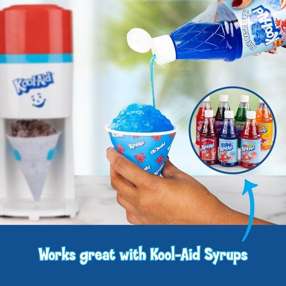 - SNOW CONE SYRUP: Use Kool-Aid snow cone syrups (purchased separately) to create a delicious snow cone treat is a breeze. All you need to do is shave your ice and add as much syrup as you desire- you can even mix and match flavors! Works great with Nostalgia or any other brand of syrup too.