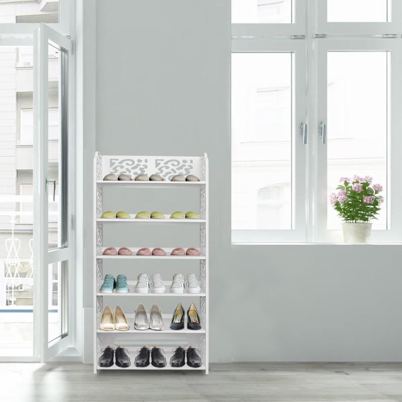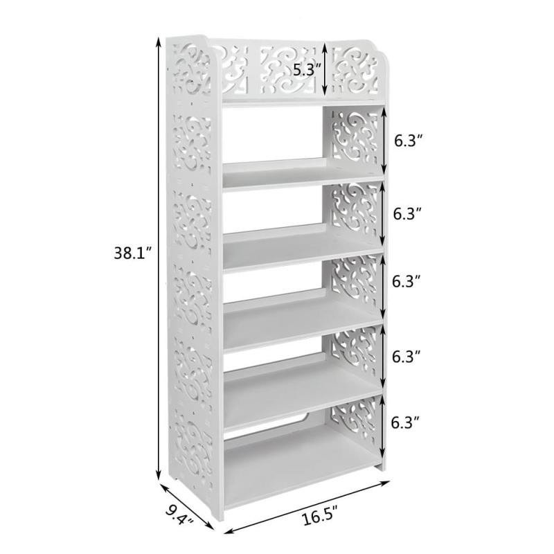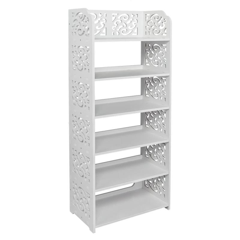 Ktaxon 6 Tier Decorative Carved Shoe Rack Shoe Shelf Closet Storage Organizer Shoe Space Saving for Entryway Bedroom Living Room, White Finish
