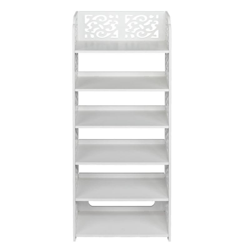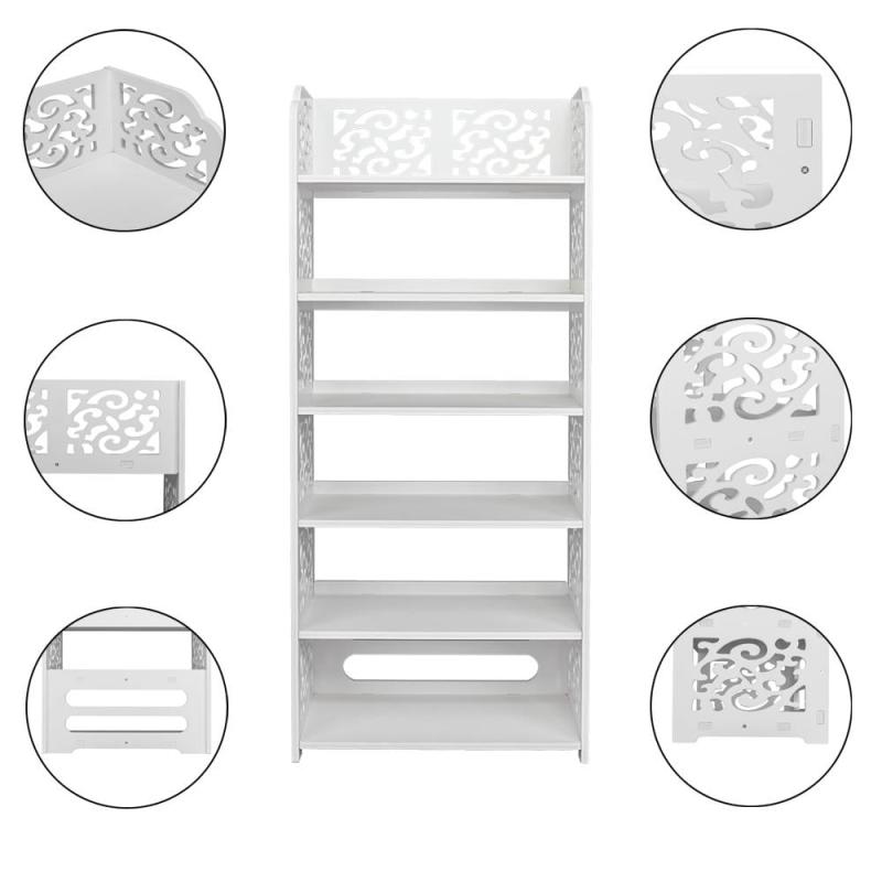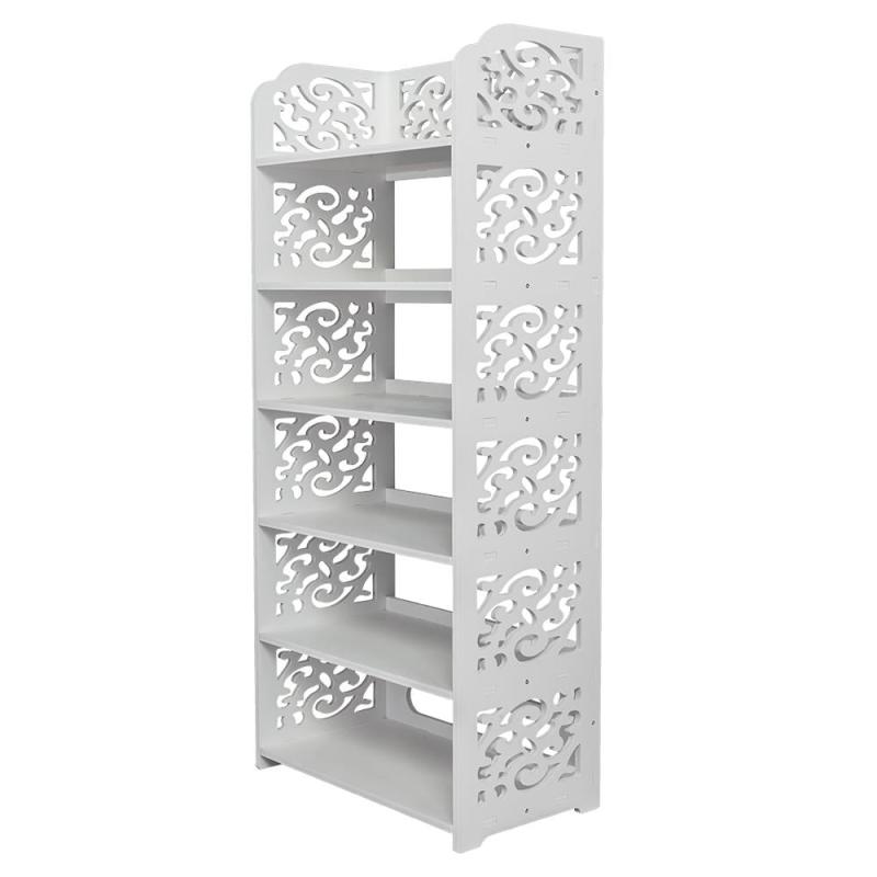 Are you looking for a practical rack to organize your shoes? If so, this Wood-plastic Board Four Tiers Carved Shoe Rack is recommended to you. It adopts wood-plastic board, which is smooth and beautiful. It also features waterproof, damp proof, easy to clean. With hollow design, it's suitable for many occasions, like living room, hall, study, bedroom, etc. Moreover, it's easy to install with no tool needed. So what are you waiting for? Just take this practical bookshelf home!