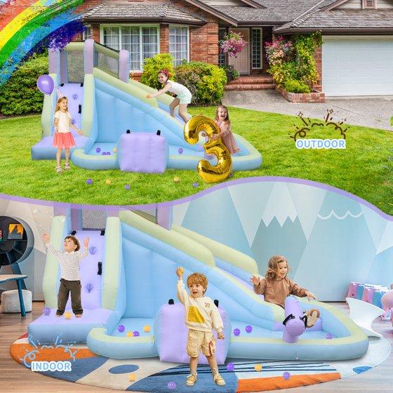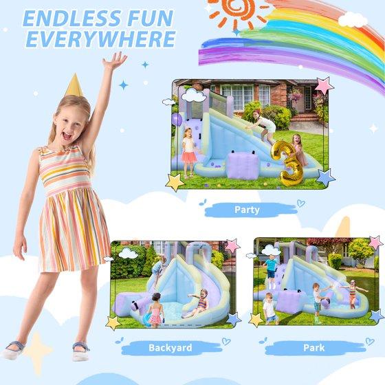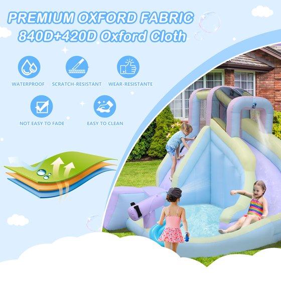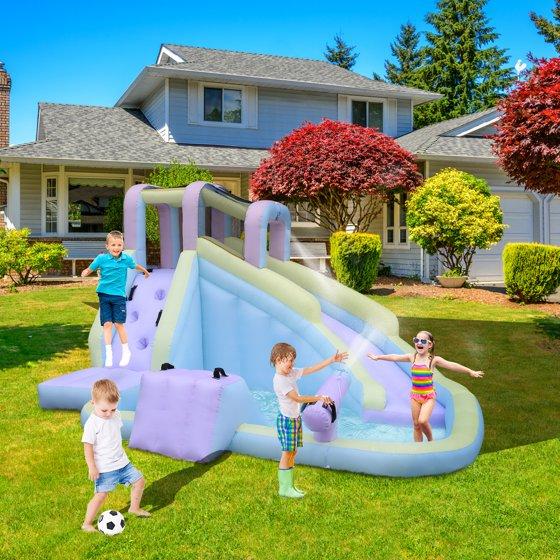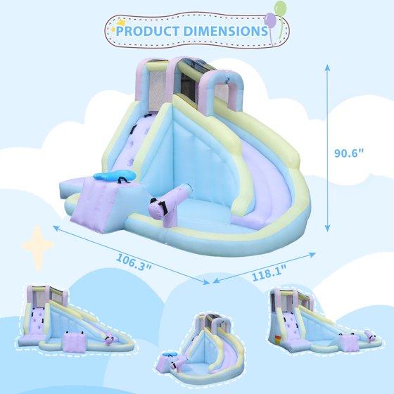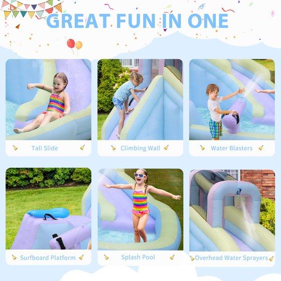 - 【Compact Size for Backyard Use】Designed to fit most backyards, this kids inflatable water park offers big fun without taking up excessive space.