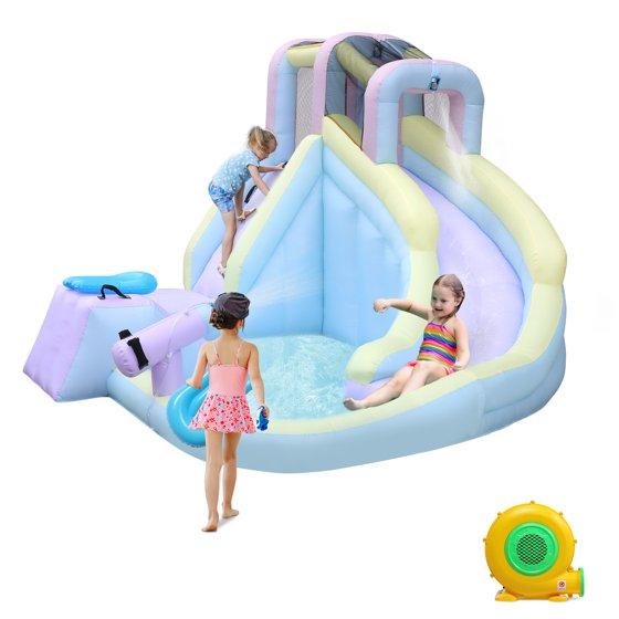 Ktaxon 7-in-1 Inflatable Water Slide Bounce House with Blower, Splash Pool & Surfboard for Kids Backyard