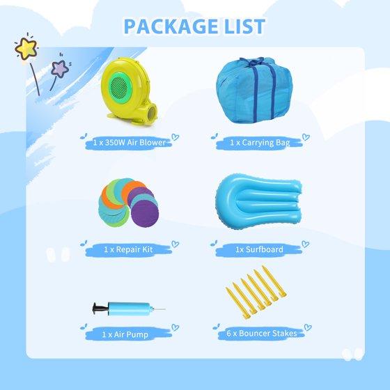 - 【Surfboard Slide for Added Fun】The included surfboard attachment creates a unique sliding experience, adding variety beyond standard inflatable water slides.