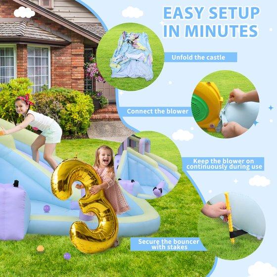 - 【Fast Setup with Included Blower】The included 550W blower inflates the inflatable in about one minute, making setup quick and easy for everyday backyard play.