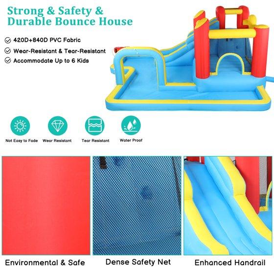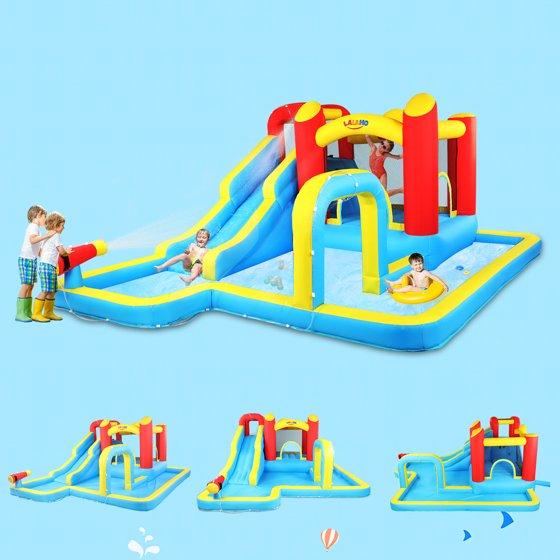 Ktaxon 7-in-1 Inflatable Water Slide Bounce House with Blower, Long Slide Water Park, Bounce Area & Archway Sprayer for Kids Backyard