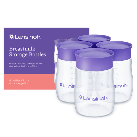 Safe, convenient storage solutions to simplify your routine. Compatible with all Lansinoh electric and manual breast pumps and feeding baby bottles for seamless pumping, storage, and feeding. These 5oz Breastmilk Storage Bottles are perfect for transporting your freshly pumped milk- just seal, chill, and go. Designed for safe fridge or freezer storage and complete with an easy-twist cap to secure your stash. Easy to clean in the dishwasher and BPA/BPS free. Born from one mother’s realization that birthing people often go without the support they need and deserve, Lansinoh proudly stands with mothers all over the world. Our journey started with award winning, doctor recommended HPA Lanolin Nipple Cream: today, we offer a comprehensive collection of solutions to help new parents navigate pregnancy, birth, breastfeeding, and pumping. Our product range includes organic nipple balm, disposable nursing pads, washable nursing pads, breastmilk storage bags, manual breast pumps and double electric breast pumps, postpartum essentials, baby bottles, and more.