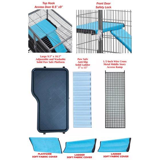 - The adjustable and washable solid platforms and anti-slip ramps offer a comfortable and secure environment for your pet.