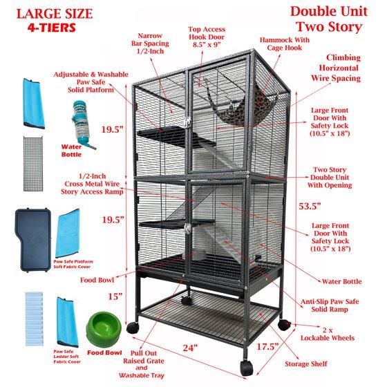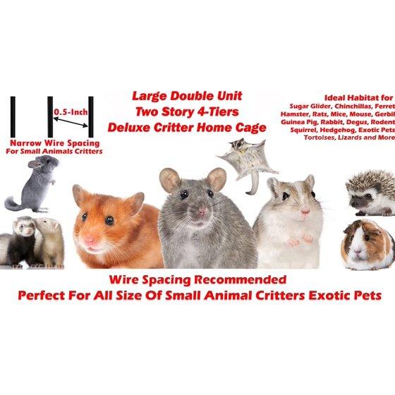 LARGE Deluxe Double Unit Two Story 4-Tiers Small Animal Critter Home Rolling Cage Hamster Habitat Mouse Rat Gerbil Guinea Pig House Ferret Hammock Chinchilla Sugar Glider Hedgehog