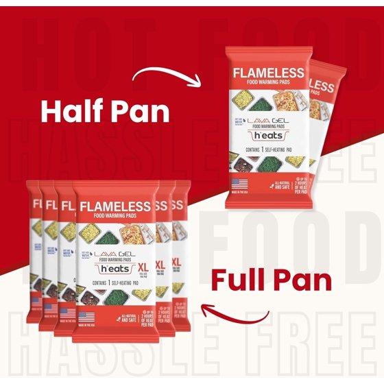- Contains 6 x Heats Lava Gel Flameless Food Warming Pads – Full Size 17 x 20".
