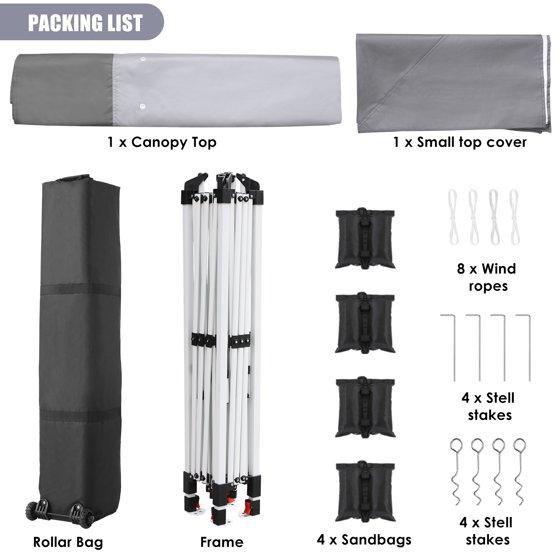- Instant folding shelter comes with an extra roller carry bag. And wheeled bag has a strong handle, which is more convenient for your transportation. Compact design measuring 9.8" x 8.3'' x 46'' (L x W x H), fits in the trunk of most cars.