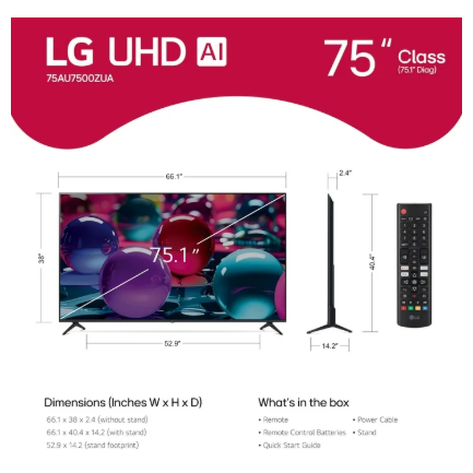 LG 75" 4K UHD UA75 AI Smart TV, 75UA7500