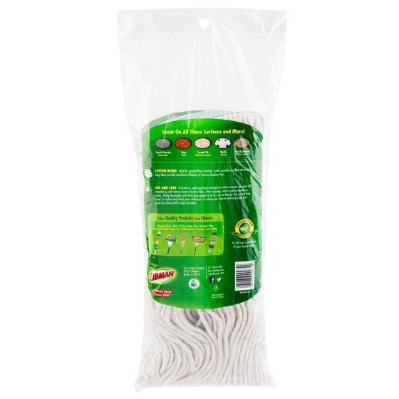 The Libman All-Purpose Wet Mop Refill is a great economical cleaning option. It is excellent for general use mopping and cleaning. The commercial strength string style mop head fits any mop handle or mop bucket with wringer. The cotton blended yarn with polyester makes it very strong, durable and reduces linting on floor surface. Polyester cotton blend reduces the mop's break in period so it absorbs more water. Approximately 14oz in total weight. Economical option for every day cleaning.