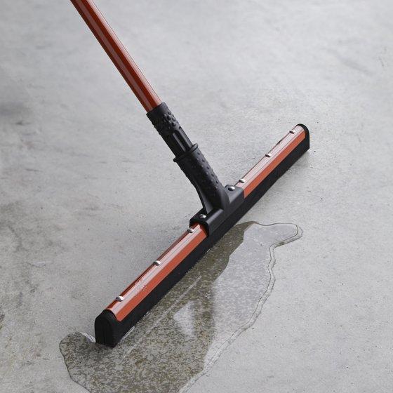 - Run squeegee across the floor using broad strokes and rinse with warm water after use