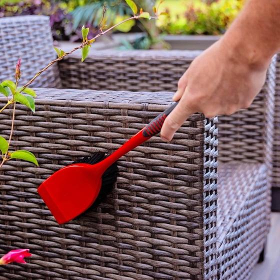 - Multi surface scrub brush fibers clean any surface such as concrete, brick, wood, stone, and more