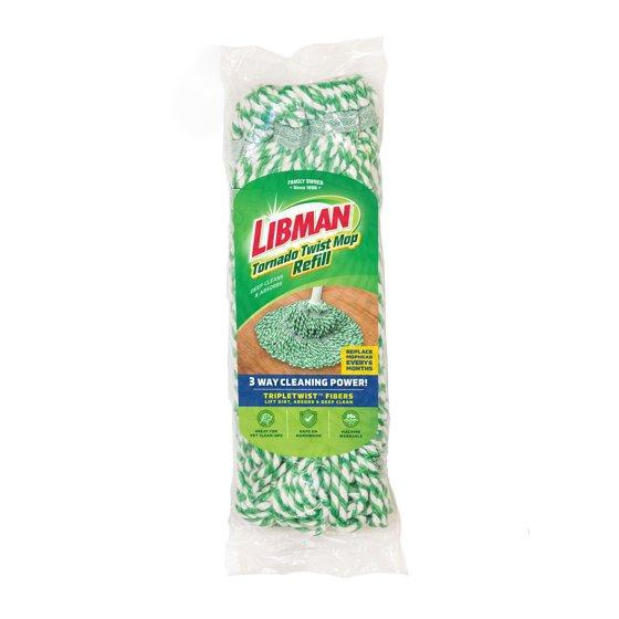 The Libman Tornado Mop® is one of America’s top-selling mops, and the Tornado Mop Refill is a quick and easy way to keep your Tornado Mop cleaning as well as possible. This direct replacement for the original Tornado Mop head features 50% more floor coverage than others in its class, allowing you to clean more completely in less time. Three tangle-resistant green bands are incorporated into the polyester and yarn mop head, all of which fight odor-causing bacteria on all surfaces.