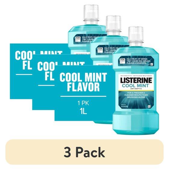 - Three (3) 1-Liter Bottles ofListerine Antiseptic Oral Care Mouthwash for bad breath in Cool Mint flavor for a deeper clean