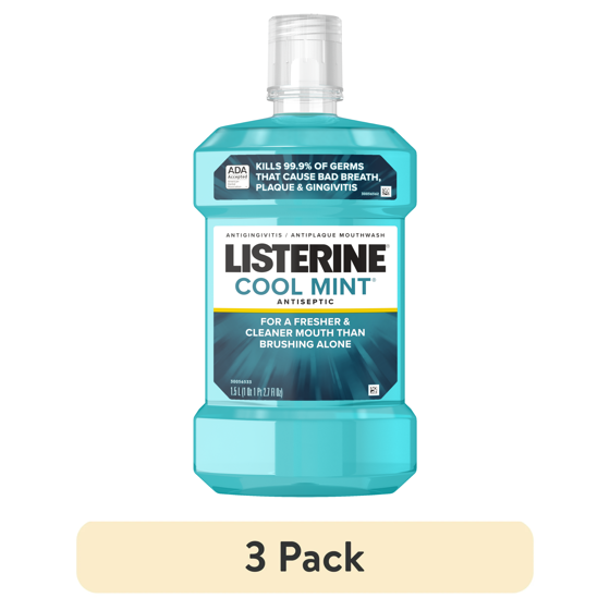 (3 pack) Listerine Cool Mint Antiseptic Mouthwash, For Bad Breath & Plaque Oral Care, 1.5 L