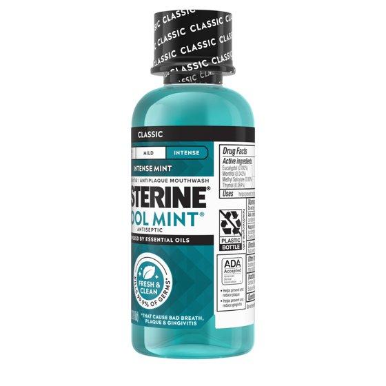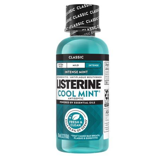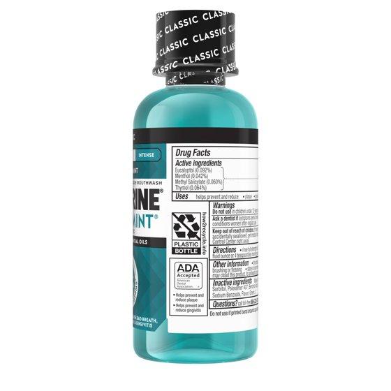 - Listerine Antiseptic Oral Care Mouthwash for bad breath in Intense Mint flavor for a deep clean