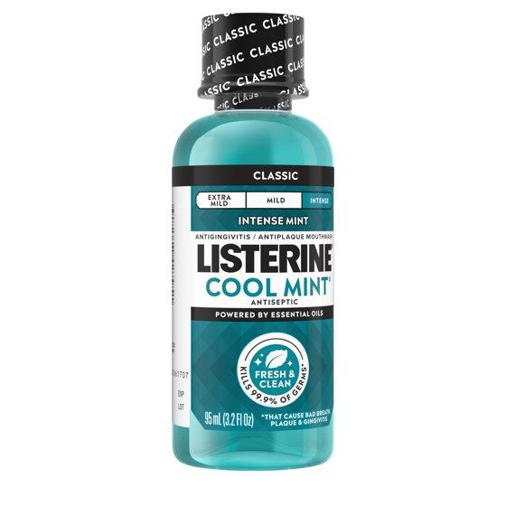Listerine Cool Mint Intense Antiseptic Mouthwash, For Bad Breath & Plaque Oral Care, 3.2 oz