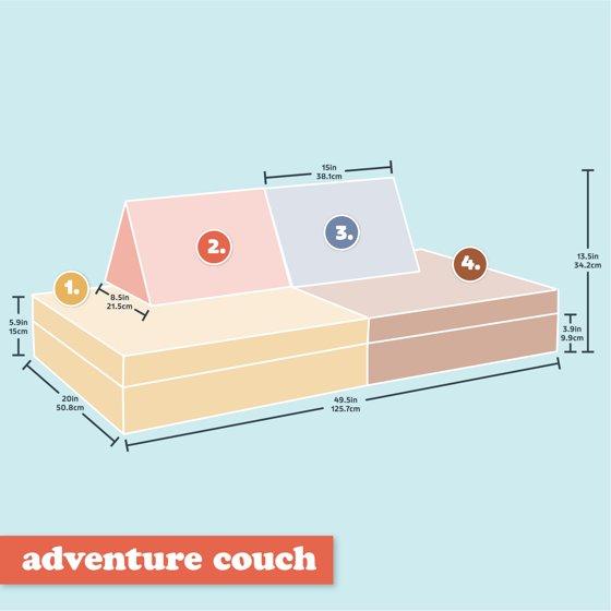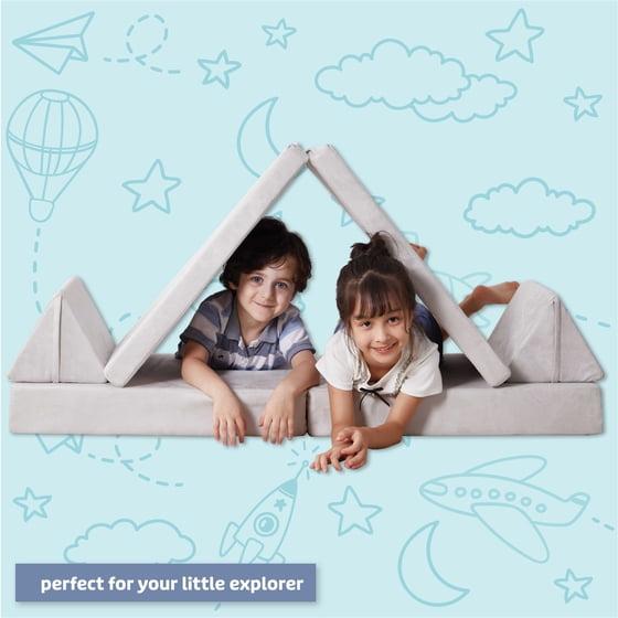 Discover boundless creativity and active play with the Little Nest Modular Adventure Couch, specifically engineered for children aged 3 and up. This highly versatile foam play couch transforms effortlessly into various configurations, making it perfect for building imaginative forts, comfortable lounging during quiet time, or even cozy naptime. Designed with modern homes in mind, it's an ideal addition to playrooms, bedrooms, or living rooms. Featuring durable, removable, and machine-washable covers for hassle-free maintenance, and a clever modular design that allows for compact, space-saving storage. Inspire endless adventures for young children with this essential piece of fun furniture.