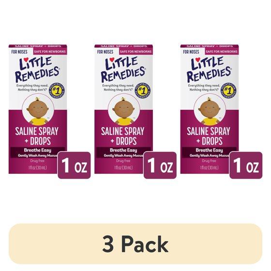 (3 pack) Little Remedies Saline Spray and Drops, Safe for Newborns, Gently Wash Away Mucus from Cold, 1 fl oz