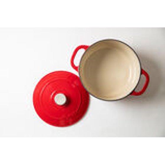 The Lodge 5.5 Quart Enameled Cast Iron Dutch Oven in Red carries on Lodge's century-old tradition of excellence as we marry the benefits of cast iron with the beauty of porcelain enamel. The porcelain surface eliminates the need to season the cast iron and the smooth surface will not react to ingredients.